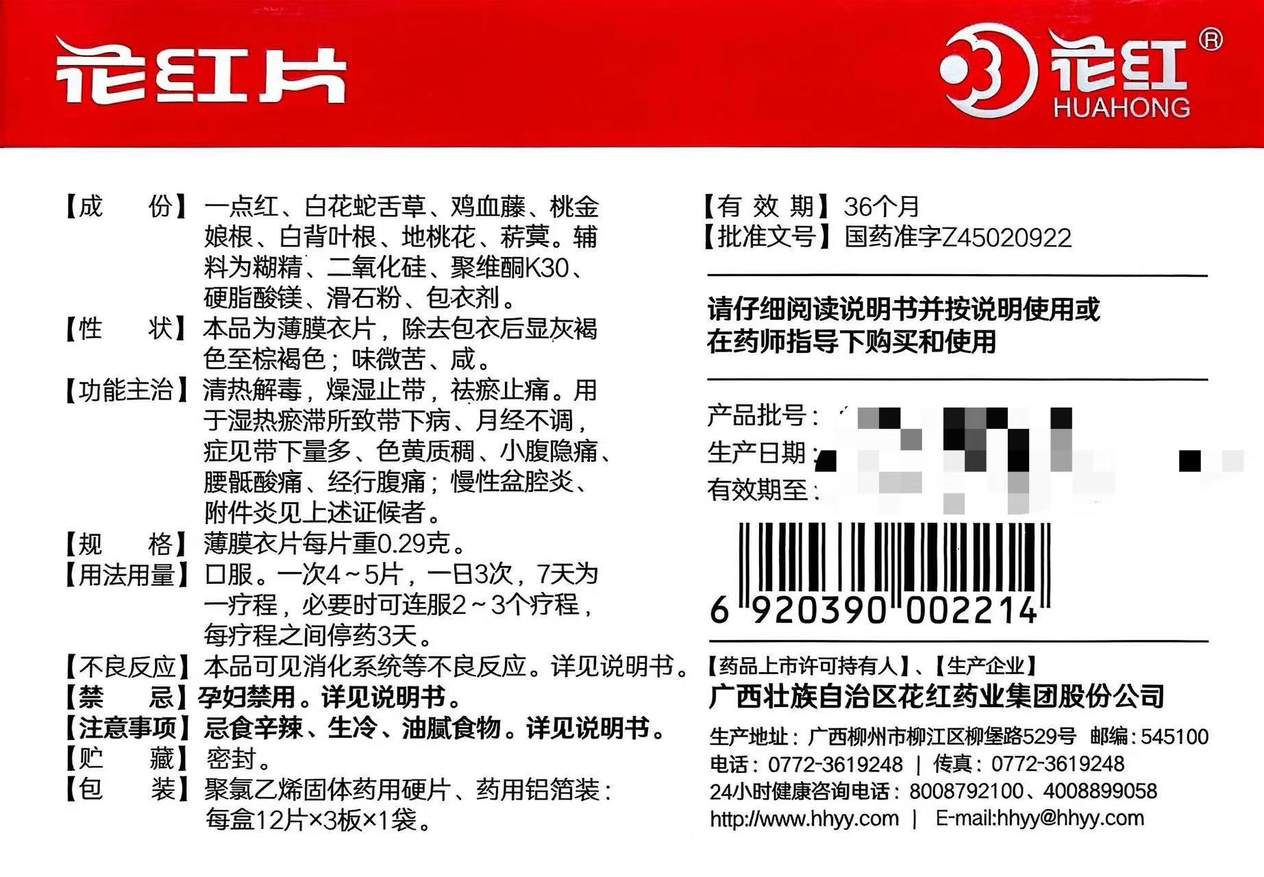 厂家:广西壮族自治区花红药业集团股份公司